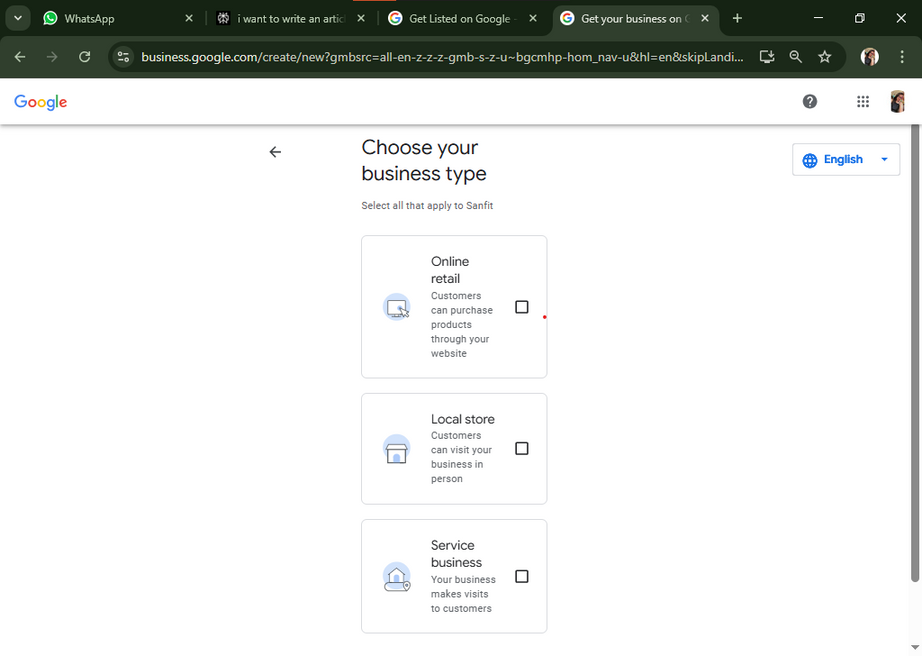 Google will inquire whether your business has a physical location or provides services at customer sites.